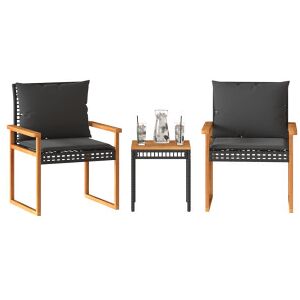 vidaXL Mesita Y Sillas Con Cojines 3 Pzas Ratán Pe Madera Acacia Negro | ✔ Comprobar en tienda | €107.28 |
