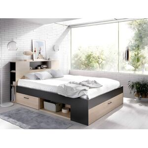 Cama arcón 160 x 200 cm - Estructura: tableros de partículas - Color: natural - Medidas: Ancho 206,4 x Alt. 87,5 x Prof. 175 cm - Estilo: clásico atemporal + colchón - ¡Crea un espacio práctico y moderno en tu dormitorio gracias al canapé abatible ELPHEGE!